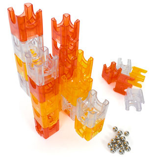 Czas na szaleństwo! Czy to futurystyczny system konstrukcji czy piękna rzeźba przedstawiająca zjeżdżalnie dla kulek opadające w dół? Ta zadziwiająca łamigłówka spełnia obie funkcje, zmuszając Cię do budowania marmurowych labiryntów w kształcie dinozaurów, robotów, ryb i wielu innych. O tak, moi drodzy, Labirynt Kulek Q-BA nie jest podobny do jakichkolwiek innych produktów konkurencyjnych, bowiem kształty, jakie tworzysz będą służyły jednocześnie za zjazdy dla kulek. Celem jest zbudowanie czegoś, czegokolwiek, za pomocą wydrążonych, łączących się ze sobą sześcianów po czym patrzeć z rozdziawionymi ustami jak małe metalowe kulki przejeżdżają przez Twoje przezroczyste dzieło. Zadziwiające. Dzięki sprytnemu zastosowaniu sześcianów z polikarbonu, możesz mieć niezły ubaw projektując coraz to niebezpieczniejsze drogi i zjazdy dla niczego nie spodziewających się kuleczek. Możliwość przeobrażeń jest nieskończona: motyle, wieże, skomplikowane kształty, surrealistyczne posągi, cokolwiek tylko zechcesz. Możesz również połączyć kilka zestawów naraz aby stworzyć spektakularny zjazd pokonujący wszelkie dotychczasowe rekordy świata. To czyste wciąganie. Ale nie musicie wierzyć nam na słowo (chociaż w sumie powinniście) ponieważ to innowacyjne zastosowanie klocków i kulek zdobywa nagrody na lewo, prawo i pośrodku. Prasa również zaczyna szaleć. Nic w tym dziwnego, ponieważ labirynt kulek Q-BA to sprytne zastosowanie trójwymiarowego myślenia twórczego dla architektów małych i dużych. Każdy z labiryntów zawiera 12 klocków i 8 kulek i każdy z nich zapewnia sporą dawkę emocji. Możesz wybrać pomiędzy 'Chłodnym' zestawem wykorzystującym niebieskie i zielone sześciany, lub zestawem 'Gorącym' z pomarańczowymi i żółtymi klockami. Akurat tutaj wybór nie sprawia problemu; te się dopiero zaczną, jak będziesz musiał zdecydować, co chcesz zbudować: kolejkę górską czy poskręcaną wieżę. Czas na szaleństwo! Zestaw labiryntu kulek Q-BA, który można połączyć aby osiągnąć oszałamiające rezultaty! (ang. Q-BA-Maze) Sześciany wykonane są z trwałego poliwęglanu Zawartość: 12 klocków i 8 kulek Dostępne kolory: niebieski, zielony i przezroczysty w zestawie 'Chłodnym' pomarańczowy, żółty i przezroczysty w zestawie 'Gorącym' Dla osób powyżej 5 roku życia Ryzyko zakrztuszenia: produkt nie nadaje się dla osób poniżej 3 roku życia |